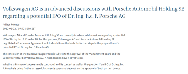 華爾街預(yù)計(jì),如果保時(shí)捷汽車最終得以獨(dú)立,估值約為600億(約合4279億元人民幣)至850億歐元(約合6062億元人民幣)之間,而整個(gè)大眾集團(tuán)目前的市值約為1120億歐元,接近再造一家大眾公司,這可能會(huì)成為歐洲最大的IPO之一。