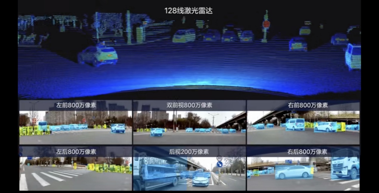 在感知方面,理想L9采用高性能攝像頭作為主要感知來源,硬件包括6顆800萬像素攝像頭和5顆200萬像素攝像頭,實現(xiàn)對車身周圍及遠距離的360°全方位感知。其中,正前方的兩顆800萬像素攝像頭組合,可實現(xiàn)對120°廣角范圍及最遠550米內(nèi)車輛、行人及錐桶等物體的識別。另外,理想L9前向的車規(guī)級激光雷達配備128個激光器,全局分辨率為1200x128,點云數(shù)量達到153萬/秒。