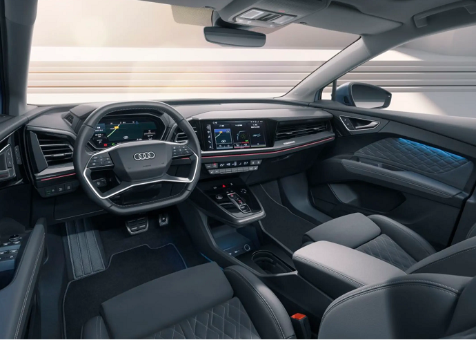 進(jìn)入車(chē)內(nèi),Q4 e-tron采用了“科幻星艦”座艙概念,遵循更以駕駛員為中心的設(shè)計(jì),整個(gè)中控區(qū)域更偏向主駕位,提高駕駛者操作效率的同時(shí)也提升了安全性。在科技感、豪華感的營(yíng)造上,10.25英寸的奧迪虛擬座艙增強(qiáng)版以及11.6英寸的MMI觸摸屏將駕駛者環(huán)抱。雙平底多功能真皮運(yùn)動(dòng)方向盤(pán)、RS e-tron GT同款“寶石雕刻”換擋機(jī)構(gòu)等符合人機(jī)工程學(xué)的設(shè)計(jì),也將使駕駛員獲得清晰、寬廣的視野。此外,奧迪A8L Horch創(chuàng)始人版同款的菱形門(mén)飾板珩縫工藝、RS風(fēng)格一體式運(yùn)動(dòng)座椅、炫彩色環(huán)境氛圍燈等,在視覺(jué)、觸覺(jué)感官上營(yíng)造了豪華氛圍。