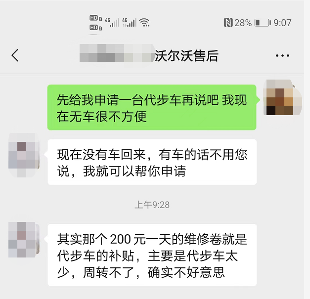 另外,由于維修期間無(wú)車使用影響到日常生活,關(guān)先生提出申請(qǐng)代步車,卻被銷售人員告知店內(nèi)無(wú)代步車,銷售人員還補(bǔ)充說(shuō):“店內(nèi)提供的200元一天的維修券就是代步車的補(bǔ)貼?!蓖瑫r(shí),銷售人員還強(qiáng)調(diào)稱,現(xiàn)在申請(qǐng)的補(bǔ)貼都是以這種形式發(fā)放,實(shí)在需要用車可以隨時(shí)將車輛拿去使用。