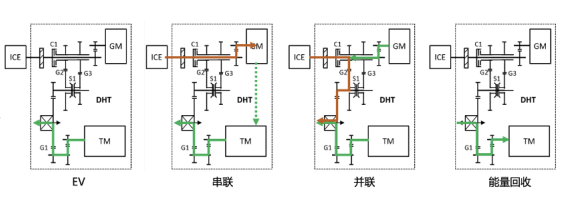 得益于雙電機(jī)混聯(lián)的混動(dòng)結(jié)構(gòu),檸檬混動(dòng)DHT可實(shí)現(xiàn)EV行駛、串聯(lián)驅(qū)動(dòng)、并聯(lián)驅(qū)動(dòng)、能量回收等各種模式智能切換,并可根據(jù)實(shí)際駕駛場(chǎng)景自動(dòng)切換到合適的模式,優(yōu)化全速域下動(dòng)力與油耗的平衡。
