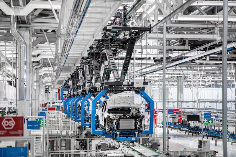 工程師對于筆者的發(fā)現(xiàn)回答道:“這是得益于我們應用了生產(chǎn)流動管理系統(tǒng)(PFM)使生產(chǎn)線具備了高柔性化特征。相對于傳統(tǒng)多車型混線生產(chǎn)需要大量人員進行車型切換等工作,而我們的‘生產(chǎn)流控制系統(tǒng)’不需要過多的人員,不僅能充分滿足全新EQE的不同訂單要求,還可以實現(xiàn)新能源車型和燃油車型生產(chǎn)的靈活切換?!?/p>