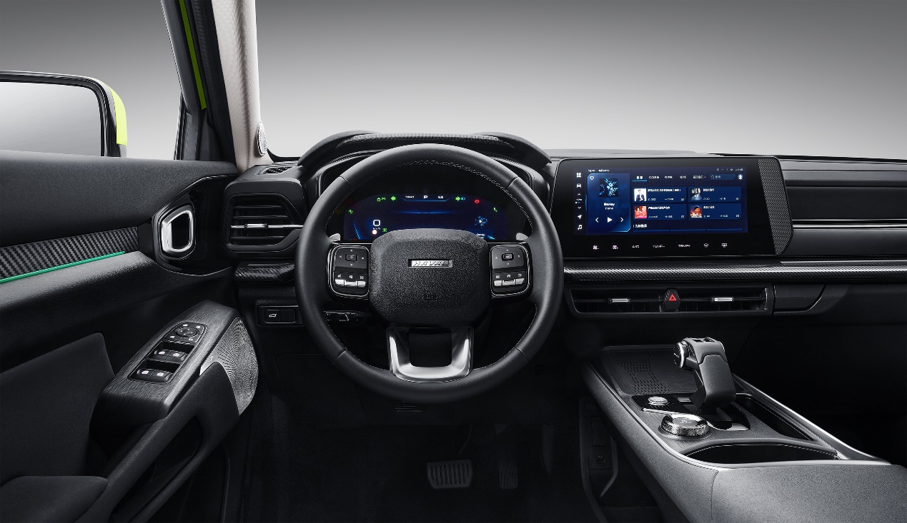 進(jìn)入車內(nèi),哈弗酷狗采用了簡約的設(shè)計(jì)風(fēng)格,平直的中控臺(tái)線條,搭配三輻式多功能方向盤、全液晶儀表、大尺寸中控液晶屏以及雙拼色的座椅配色,還采用了與坦克300類似的航空式擋桿設(shè)計(jì),讓座艙具有一定的科技感和活潑感。