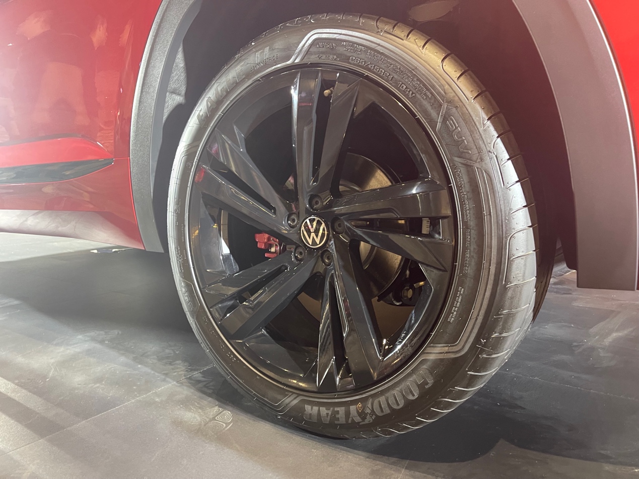 熏黑的五輻式輪轂、黑色的外后視鏡、黑色的翼子板飾條以及門把手上的黑色線條,都在細(xì)節(jié)上展現(xiàn)出全新途昂X的運(yùn)動(dòng)定位。