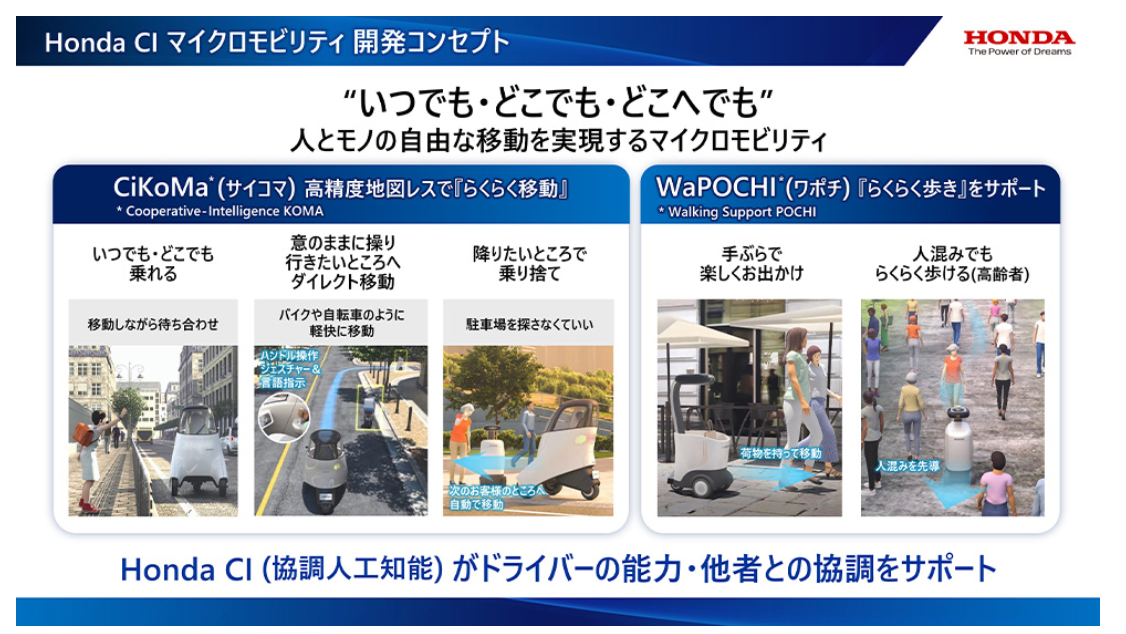 據(jù)介紹,此類微型車是本田下一代移動出行品牌CiKoMa下的車型,其采用空間識別攝像頭和人工智能AI技術,初期的續(xù)航里程為20km至30km,車速為10h/km至15h/km。本田表示,近期其將在東京北部的露營地正式測試CiKoMa品牌的微型車。