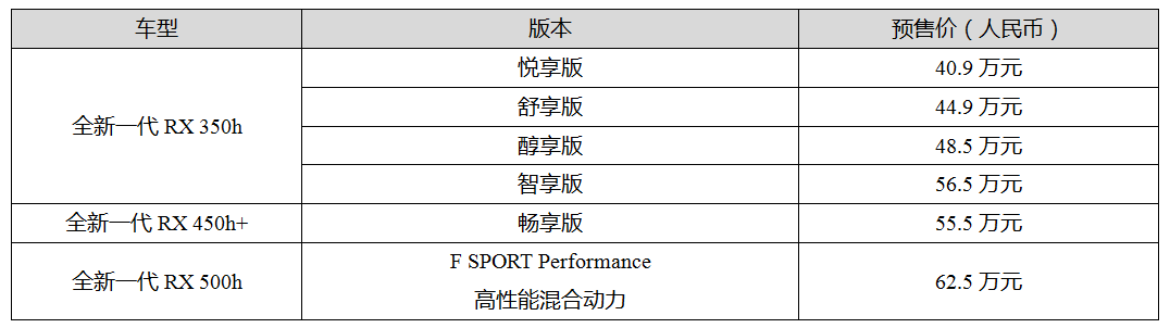 全新一代RX預售價格*