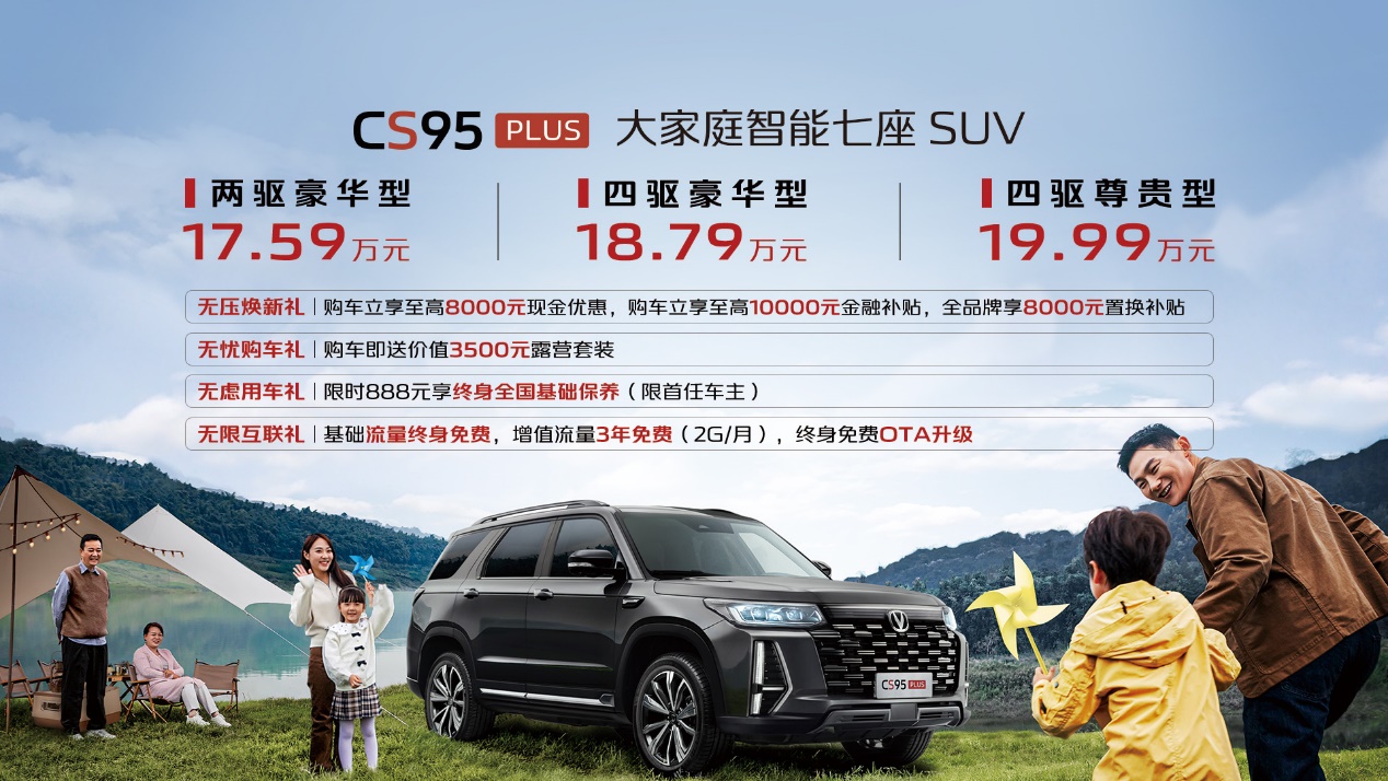中國質量新聞網訊(張陽)今日,定位為“大家庭智能7座SUV”的長安汽車CS95PLUS正式上市,新車共推出三款車型,售價區(qū)間為17.59萬元-19.99萬元。據了解,此次長安汽車CS95PLUS主要針對空間、動力、顏值以及智能科技四個方面進行了升級調整,進一步提升了自身的產品力。