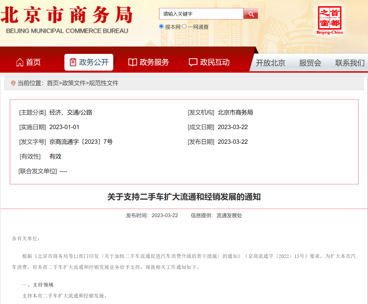 中國質量新聞網(wǎng)訊(張陽)3月22日,北京市商務局發(fā)布《關于支持二手車擴大流通和經(jīng)銷發(fā)展的通知》(以下簡稱《通知》)?!锻ㄖ诽岬?,將對北京市二手車擴大流通和經(jīng)銷發(fā)展業(yè)務給予資金獎勵。