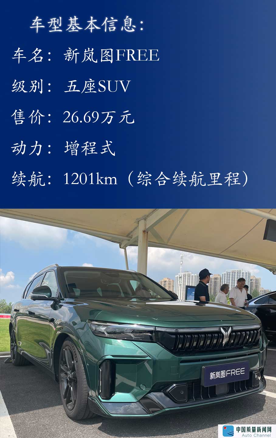 新嵐圖FREE于8月19日在2023 VOYAH NIGHT嵐圖用戶之夜正式上市,售價(jià)26.69萬元。