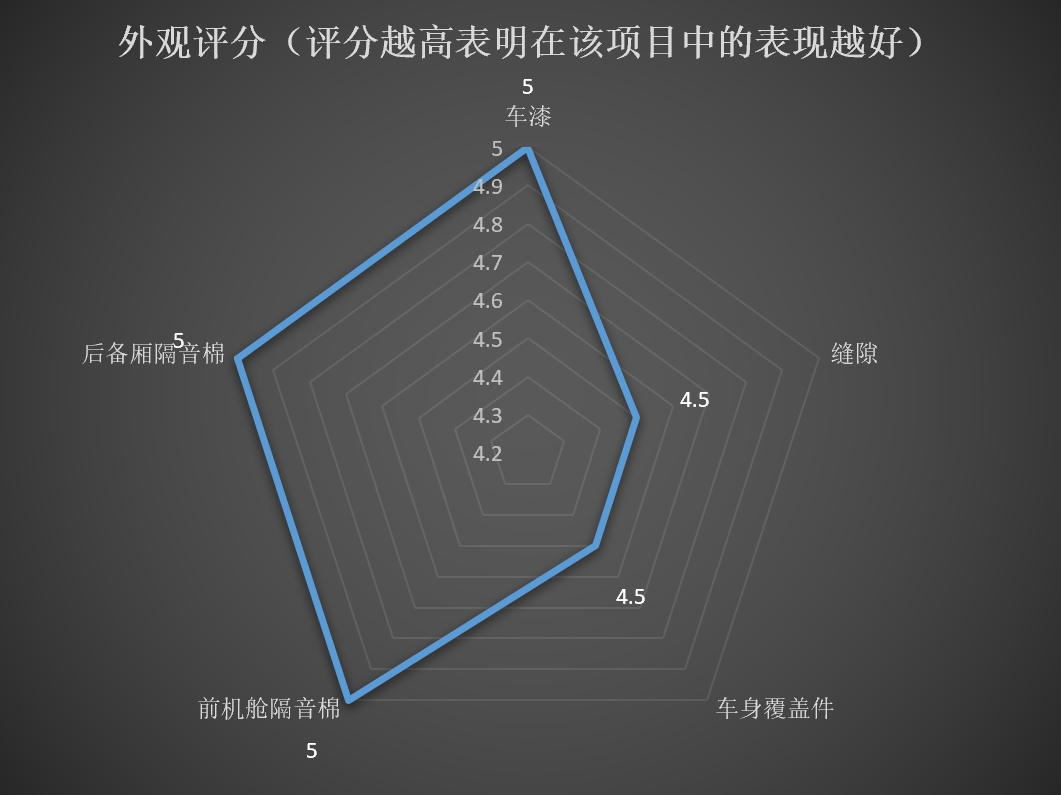 而車身覆蓋件部分,包括后視鏡、門把手、進(jìn)氣格柵等沒有明顯松垮、異響等現(xiàn)象。