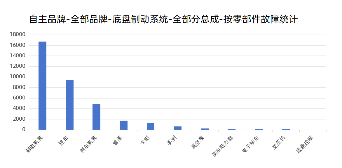 其中,底盤制動系統(tǒng)故障中比較有代表性的故障為ABS、電子駐車、剎車系統(tǒng)、手剎以及剎車泵等。而以上故障點將直接影響行車安全,最大原因在于管路、卡鉗、真空泵、剎車助力器、空壓機等零部件故障或工藝欠佳所致。
