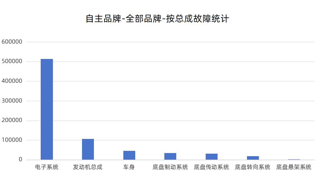 數(shù)據(jù)顯示,底盤懸架系統(tǒng)出現(xiàn)的質(zhì)量問題僅個位數(shù),電子系統(tǒng)質(zhì)量故障數(shù)據(jù)為254余萬。表現(xiàn)在統(tǒng)計數(shù)據(jù)中,平均每輛車因電子電控質(zhì)量故障維修6次。