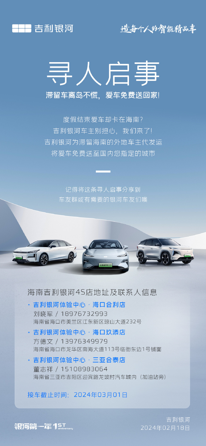 中國質量新聞網訊(劉瀚文)日前,哪吒汽車、騰勢、方程豹、埃安、吉利銀河、長安啟源、深藍汽車、阿維塔、問界等車企均發(fā)布海南護航離島的公告,對滯留在海南的外地車主提供車輛免費代發(fā)運服務。