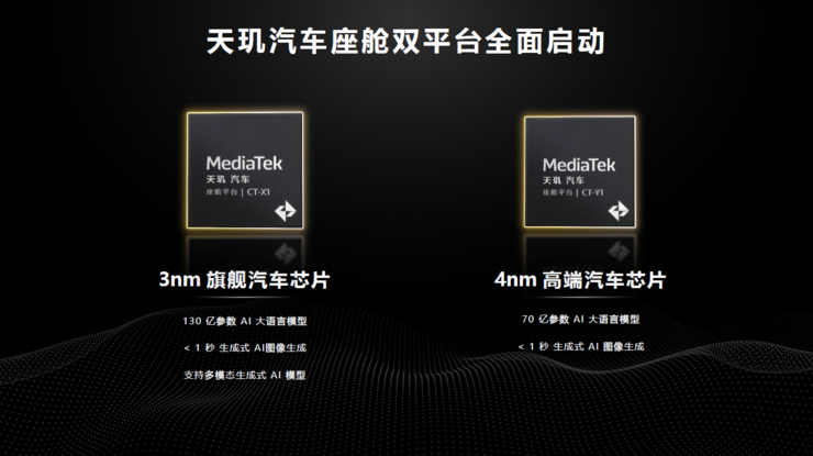 其中,CT-X1采用3nm制程,具備生成式AI、算力完整釋放、一芯多屏、攝像等優(yōu)勢(shì)。同時(shí)可在車內(nèi)運(yùn)行多種主流的大語言模型和AI繪圖功能,提供基于3D圖形界面的車載語音助手、豐富的多屏互動(dòng)與顯示技術(shù)、駕駛警覺性監(jiān)測(cè)等先進(jìn)的AI安全和娛樂應(yīng)用。