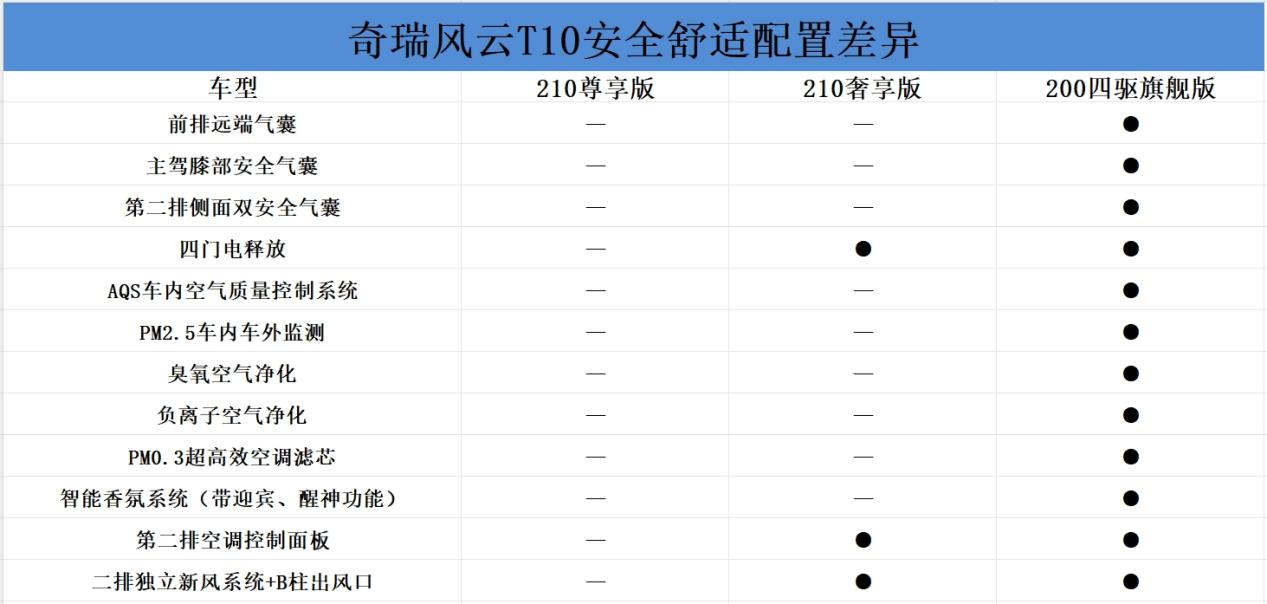 最后,來(lái)看安全舒適配置,210奢享版和入門版的差別同樣不大,僅僅增加了四門電釋放、第二排空調(diào)控制面板和二排獨(dú)立新風(fēng)系統(tǒng)+B柱出風(fēng)口,但這三項(xiàng)均能提升乘坐的舒適性,尤其是四門電釋放,能夠讓用戶在上下車時(shí)更具儀式感。