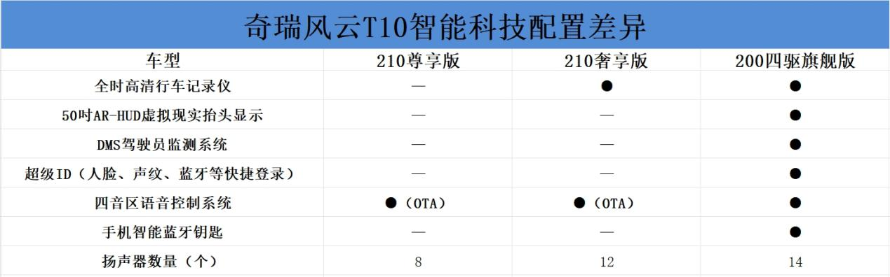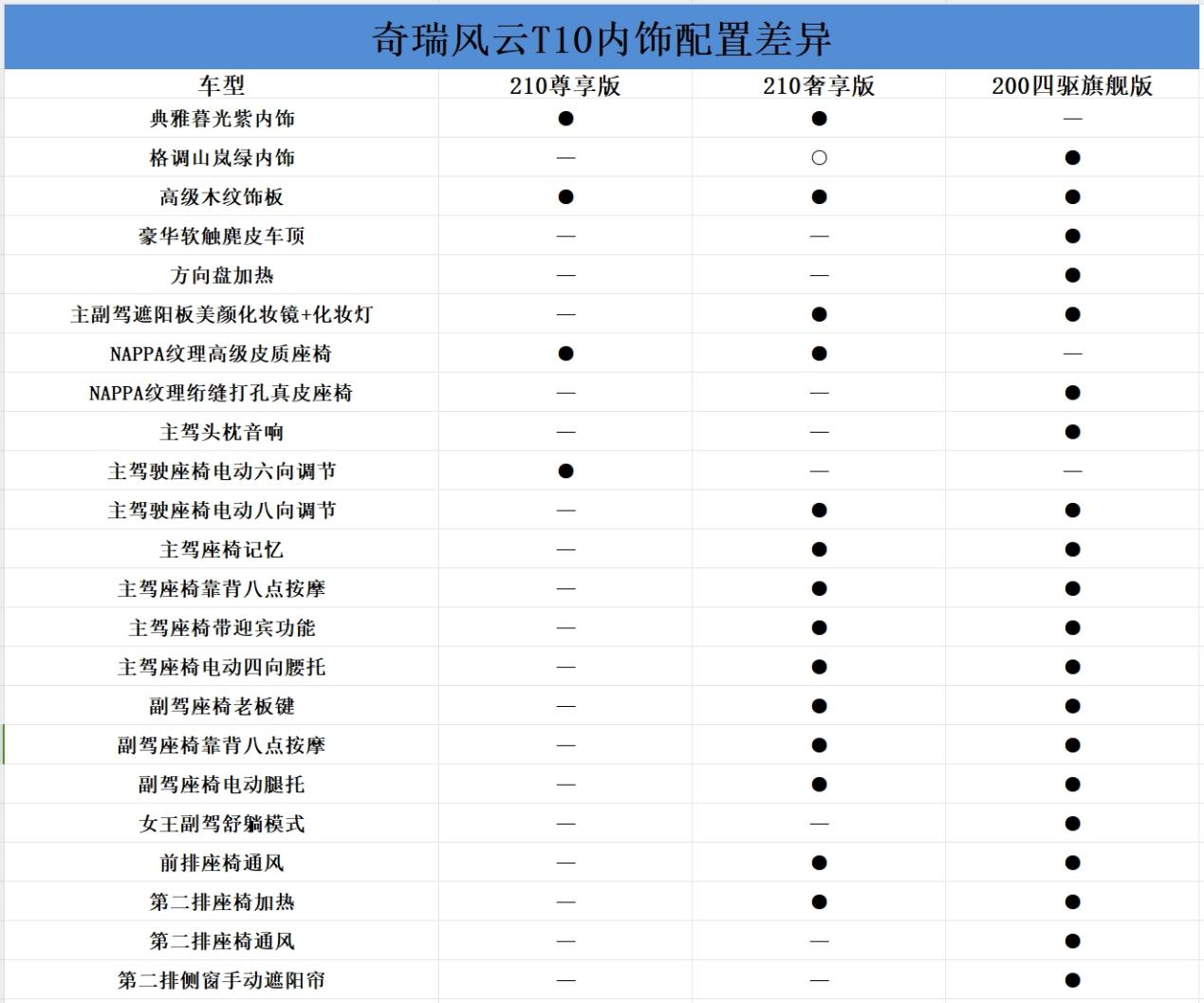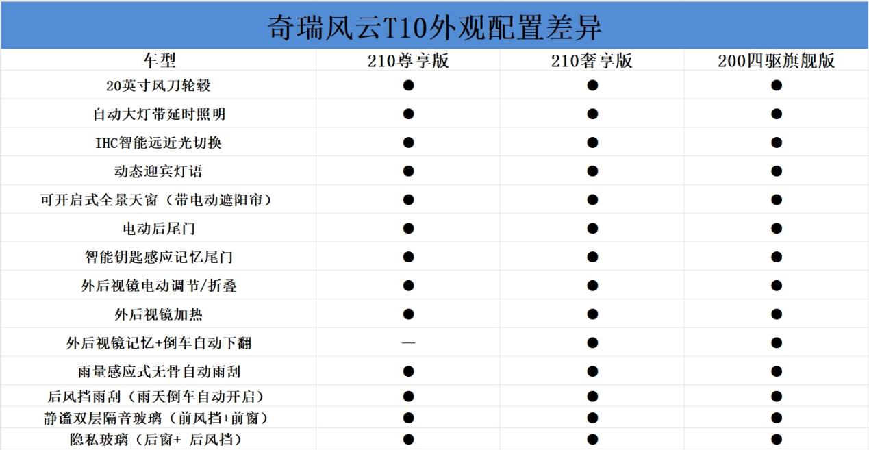 其他配置方面,僅入門車型——210尊享版沒(méi)有配備外后視鏡記憶+倒車自動(dòng)下翻功能。