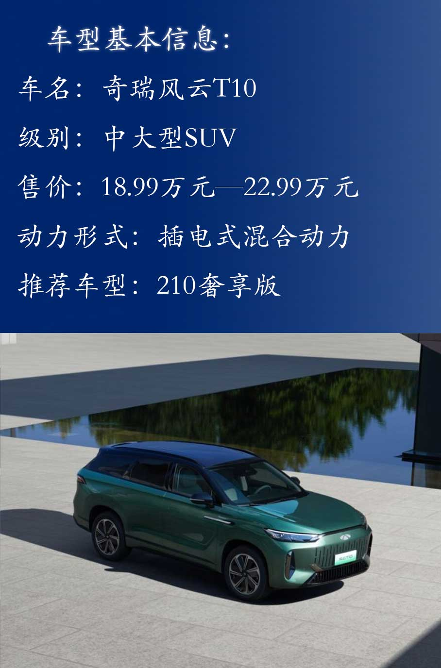 7月25日,奇瑞風(fēng)云T10在云南彌勒上市。新車定位中大型插電混動(dòng)SUV,有5座和6座可選,此次共帶來(lái)3款車型,售價(jià)18.99萬(wàn)元—22.99萬(wàn)元。