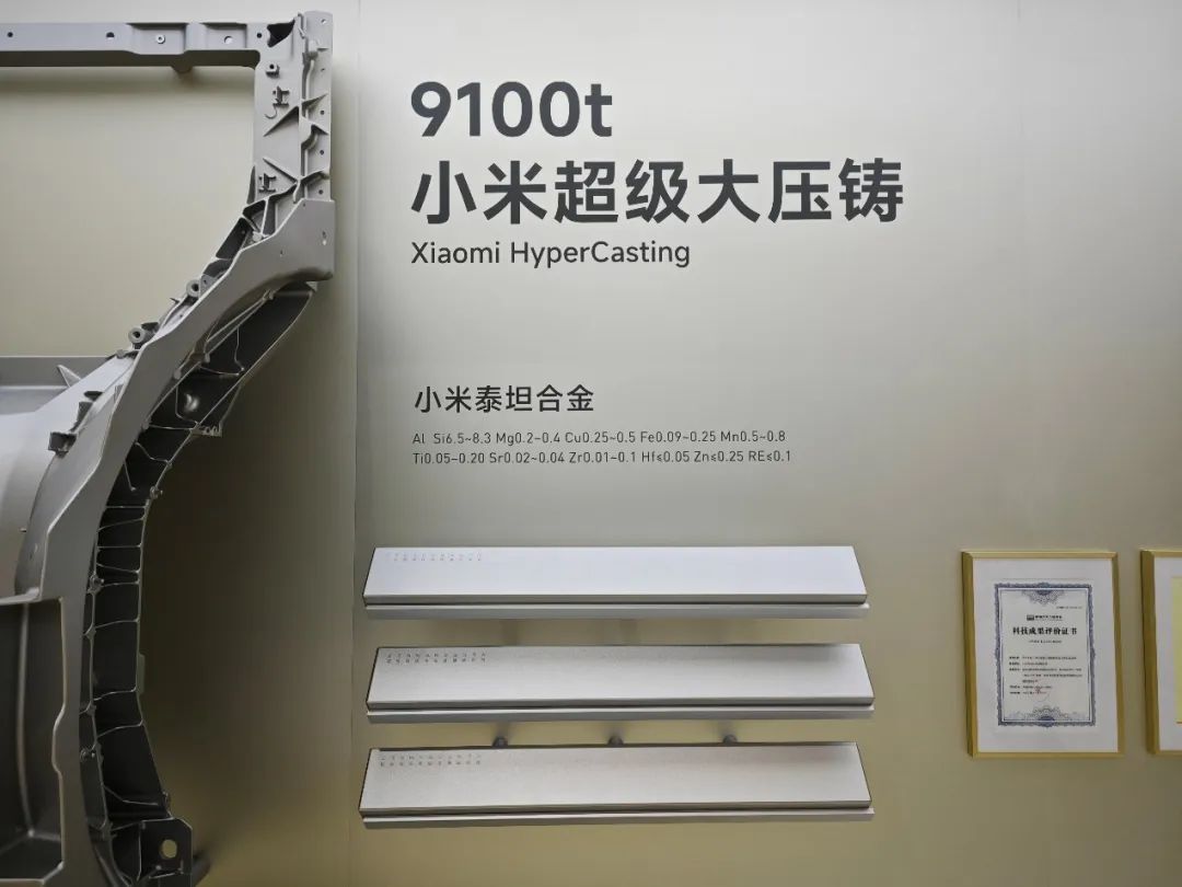 作為亮點(diǎn)之一,壓鑄機(jī)具備9100噸的鎖模能力,泰坦合金在700℃高溫爐熔化為液態(tài)鋁;液態(tài)鋁通過340倍標(biāo)準(zhǔn)大氣壓的壓力,以25倍的重力加速度,100毫秒內(nèi)注入模具;由壓鑄機(jī)對模具內(nèi)的泰坦合金施加9100噸的壓力,使金屬分子更緊密,大幅提升鑄件的強(qiáng)度和剛度。這種工藝,可以簡單理解為高壓鑄造加鍛造的生產(chǎn)工藝。