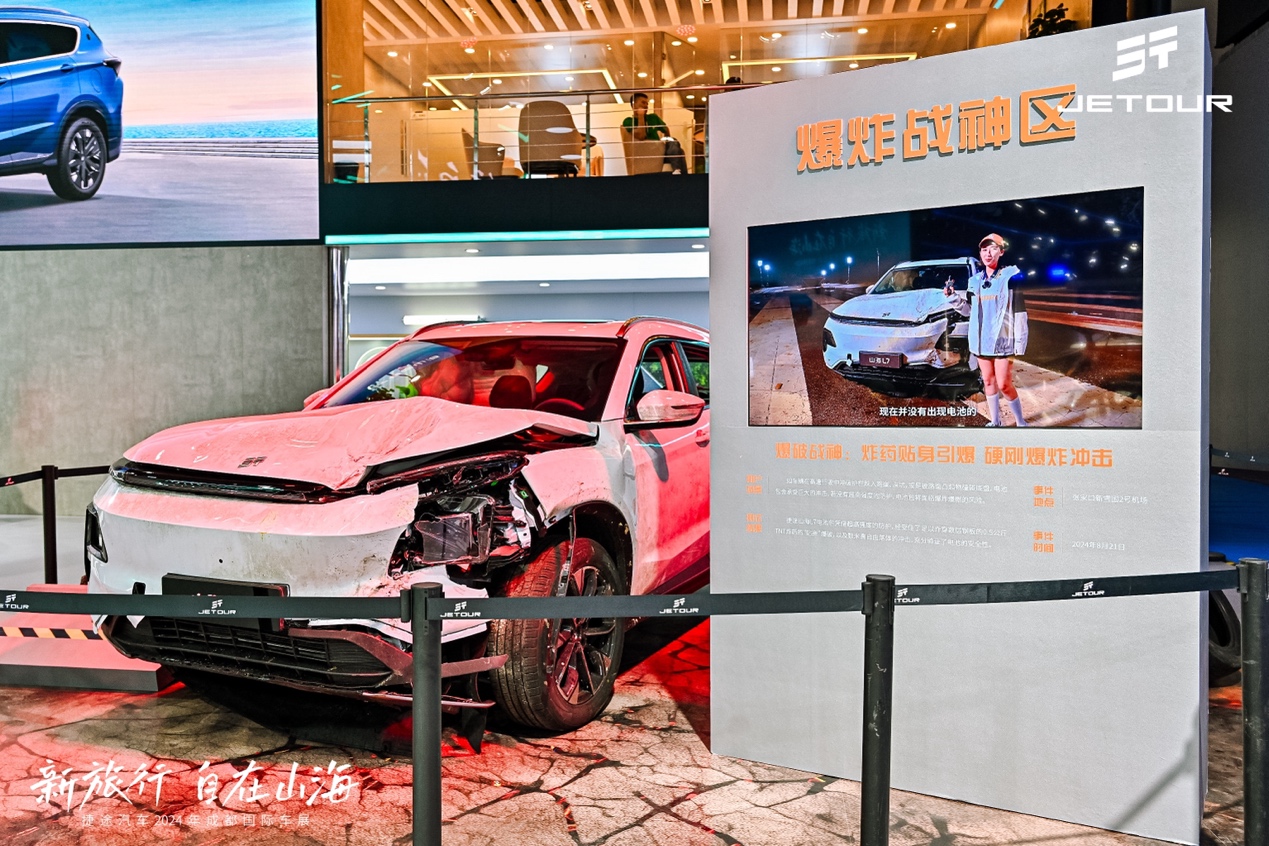 捷途展臺上,山海L7爆破戰(zhàn)神車同樣吸引了眾多的觀眾。在“飛坡爆破”挑戰(zhàn)中,山海L7爆破戰(zhàn)神車在純電模式下,經(jīng)歷1.9米的高坡墜落和10輪爆破后,車身框架完好、車門正常開啟,電池包不漏液、不冒煙、不爆炸,將新車的安全性與高品質(zhì)展現(xiàn)得淋漓盡致。