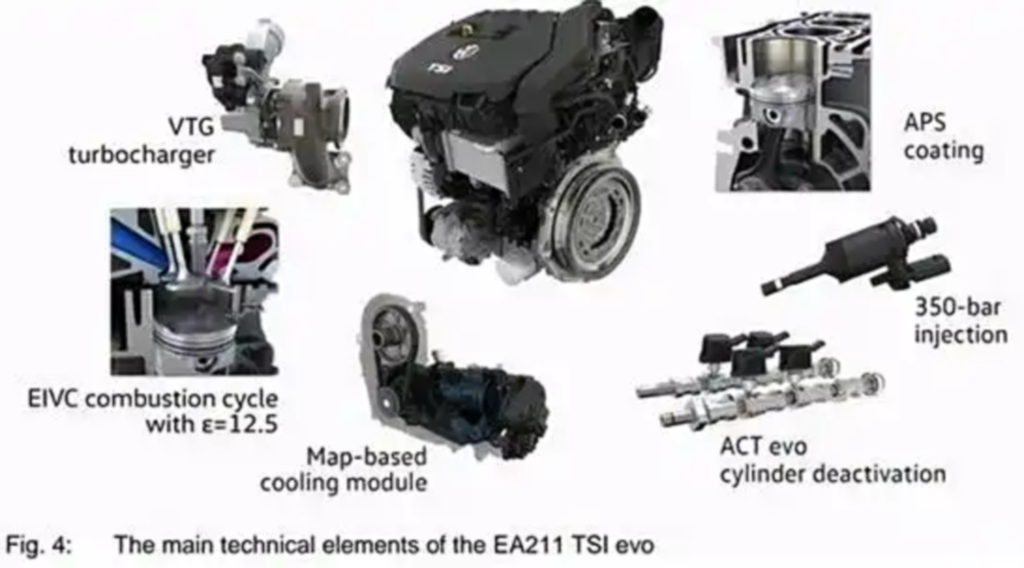 大眾集團(tuán)的1.5T EVOⅡ發(fā)動(dòng)機(jī)是多次更新后的EA211發(fā)動(dòng)機(jī),有“第二代黃金動(dòng)力”的稱號(hào),這臺(tái)發(fā)動(dòng)機(jī)除了缺少ACT停缸技術(shù),其它如變截面渦輪、APS噴涂工藝全都具備。