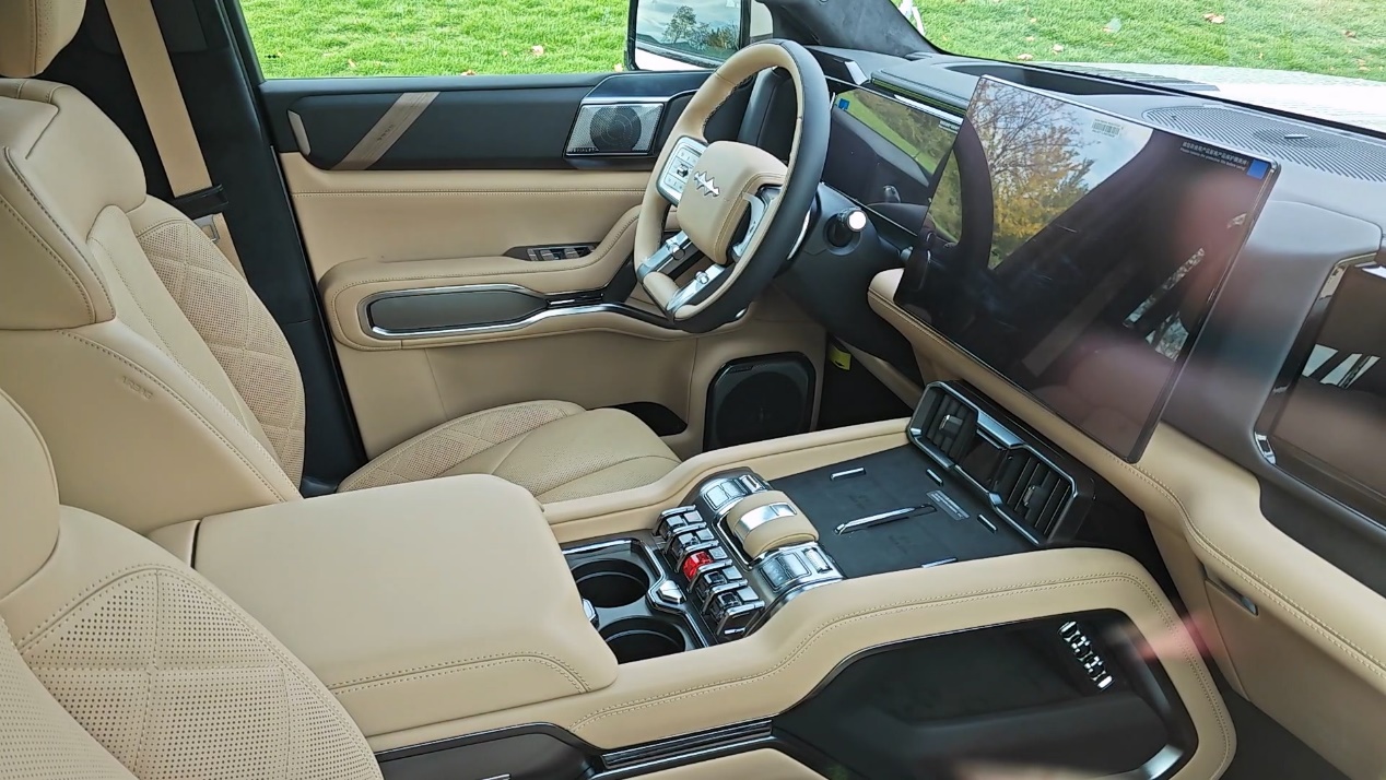 動(dòng)力方面,采用DMO平臺(tái),配備電控差速鎖、低速四驅(qū),支持900mm的涉水深度。綜合輸出功率550kW,系統(tǒng)扭矩760牛米,0-100km/h加速時(shí)間為4.8秒??蛇x配備云輦-P系統(tǒng),可以調(diào)節(jié)底盤的軟硬以及高低,懸架行程可調(diào)范圍140mm。