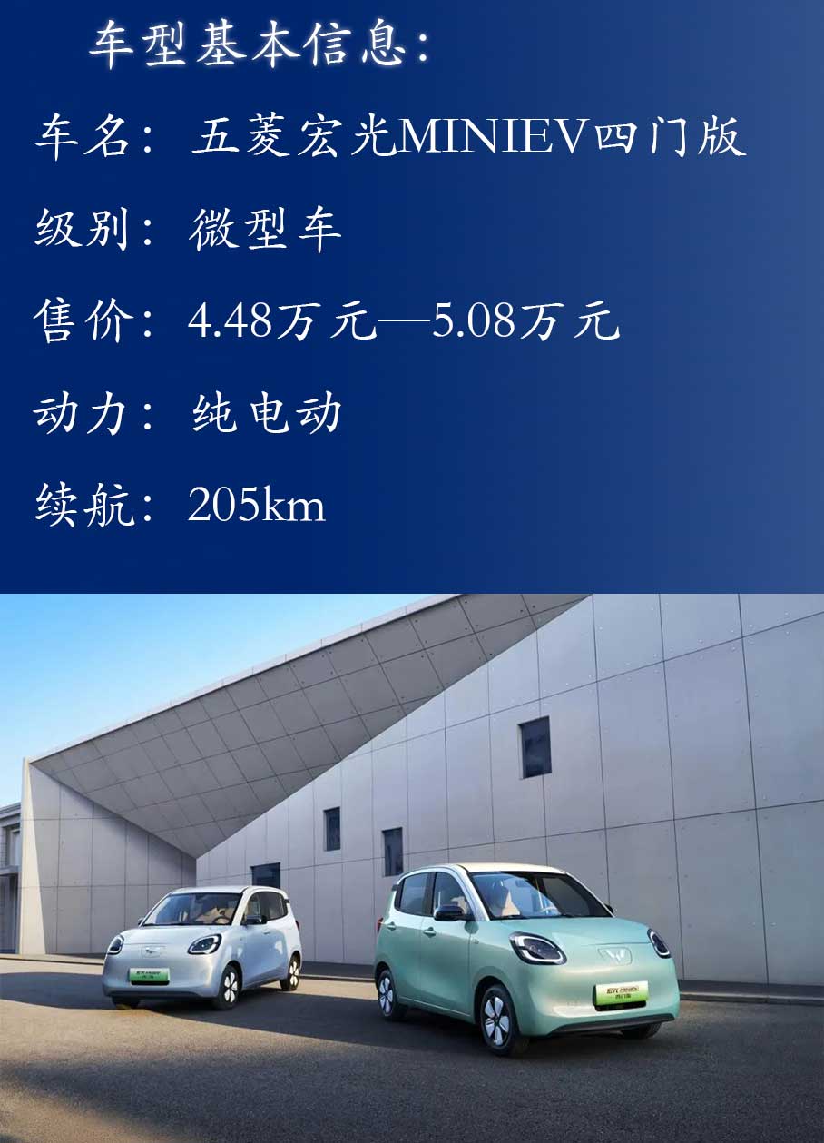 五菱宏光MINIEV憑借小巧的車身尺寸、極具誘惑力的售價等優(yōu)勢,在國內純電微型車市場中擁有龐大的用戶基礎。日前,五菱宏光MINI EV推出四門版車型,共三個版本,售價4.48萬元—5.08萬元。哪款實用性更強?