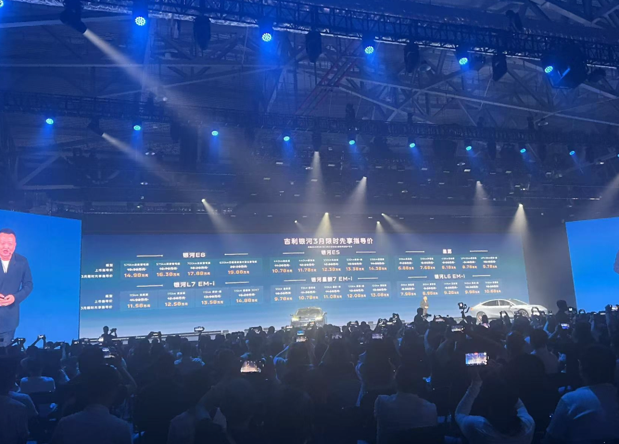 發(fā)布會(huì)現(xiàn)場(chǎng),吉利汽車同步公布多款新產(chǎn)品售價(jià)。其中,全新銀河E8限時(shí)先享指導(dǎo)價(jià)14.98萬元-19.88萬元;銀河E5限時(shí)先享指導(dǎo)價(jià)10.78萬元-14.38萬元;星愿限時(shí)先享指導(dǎo)價(jià)6.88萬元-9.78萬元;銀河L7 EM-i限時(shí)先享指導(dǎo)價(jià)11.58萬元-14.88萬元;銀河星艦7 EM-i限時(shí)先享指導(dǎo)價(jià)9.78萬元-13.08萬元;銀河L6 EM-i限時(shí)先享指導(dǎo)價(jià)7.98萬元-10.68萬元。
