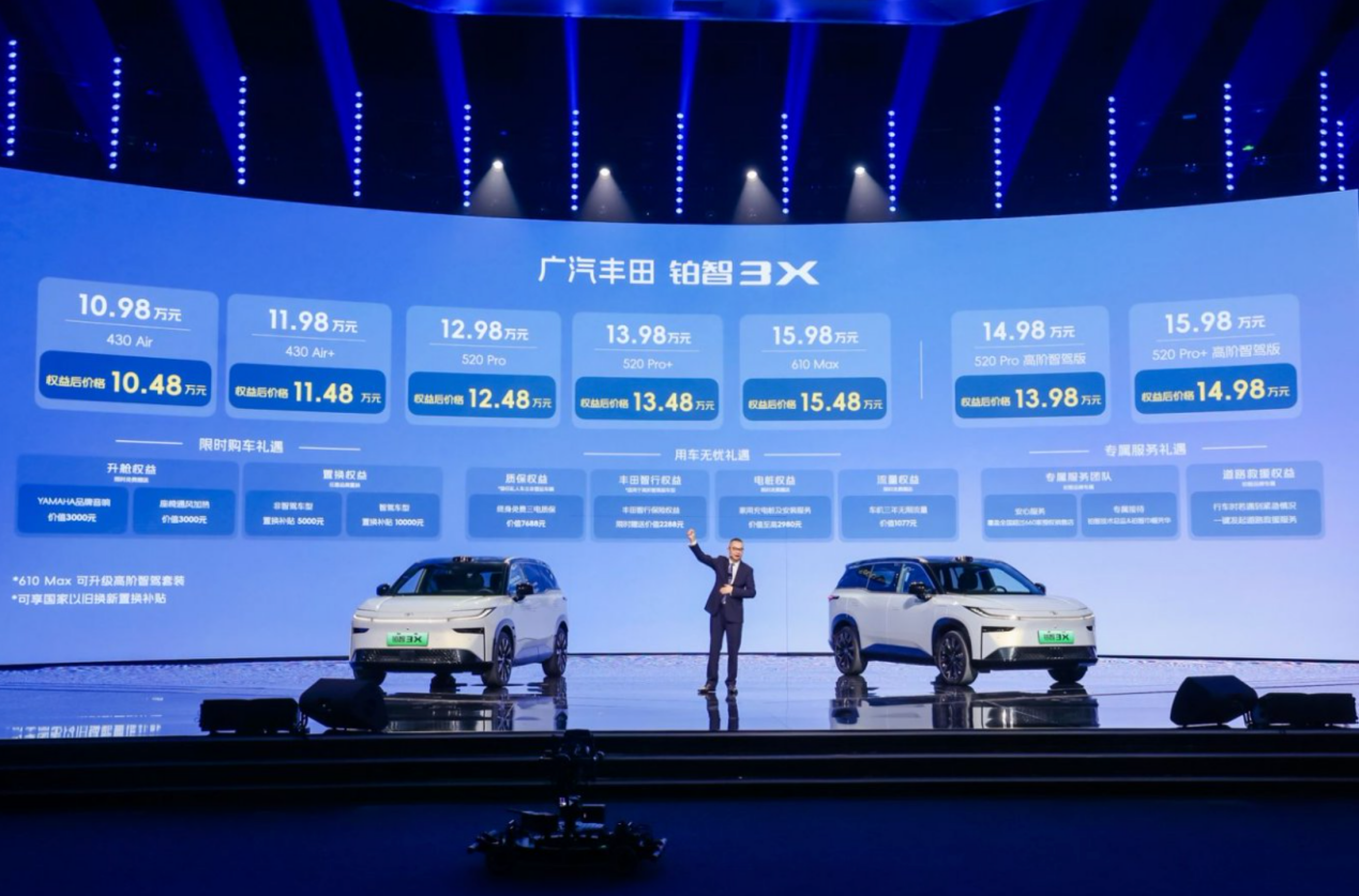 價(jià)格方面,廣汽豐田參考新勢(shì)力的商品定義模式和自主品牌的定價(jià)策略,將鉑智3X的價(jià)格鎖定在10.98萬元-15.98萬元區(qū)間。