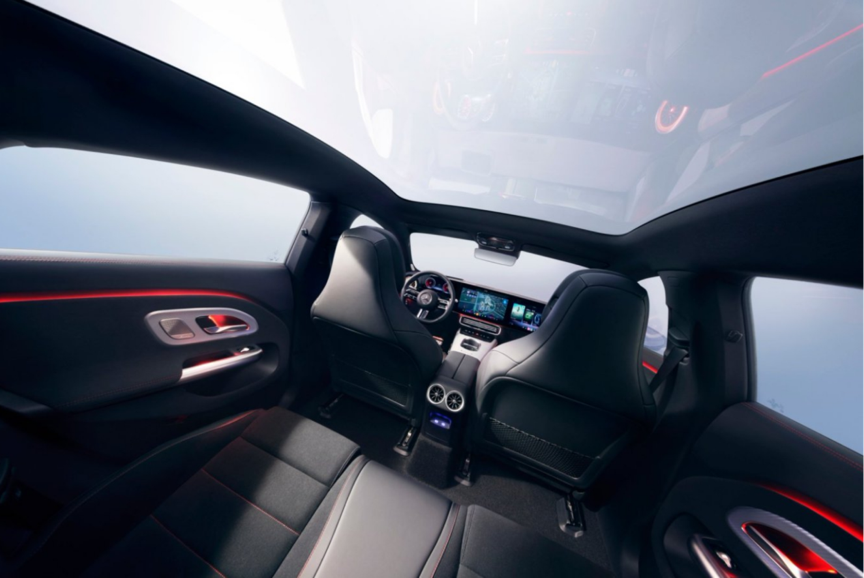 全新純電長(zhǎng)軸距CLA采用溜背式設(shè)計(jì),流暢的車身線條搭配隱藏式門(mén)把手和無(wú)框車門(mén),將風(fēng)阻系數(shù)降低至0.21。還標(biāo)配大尺寸全景式天幕,從前擋風(fēng)玻璃框架無(wú)縫延伸至車尾,提供更加通透的車內(nèi)視覺(jué)效果。值得一提的是,與上一代車型相比,全景式天幕有效增加了前后排的頭部空間。