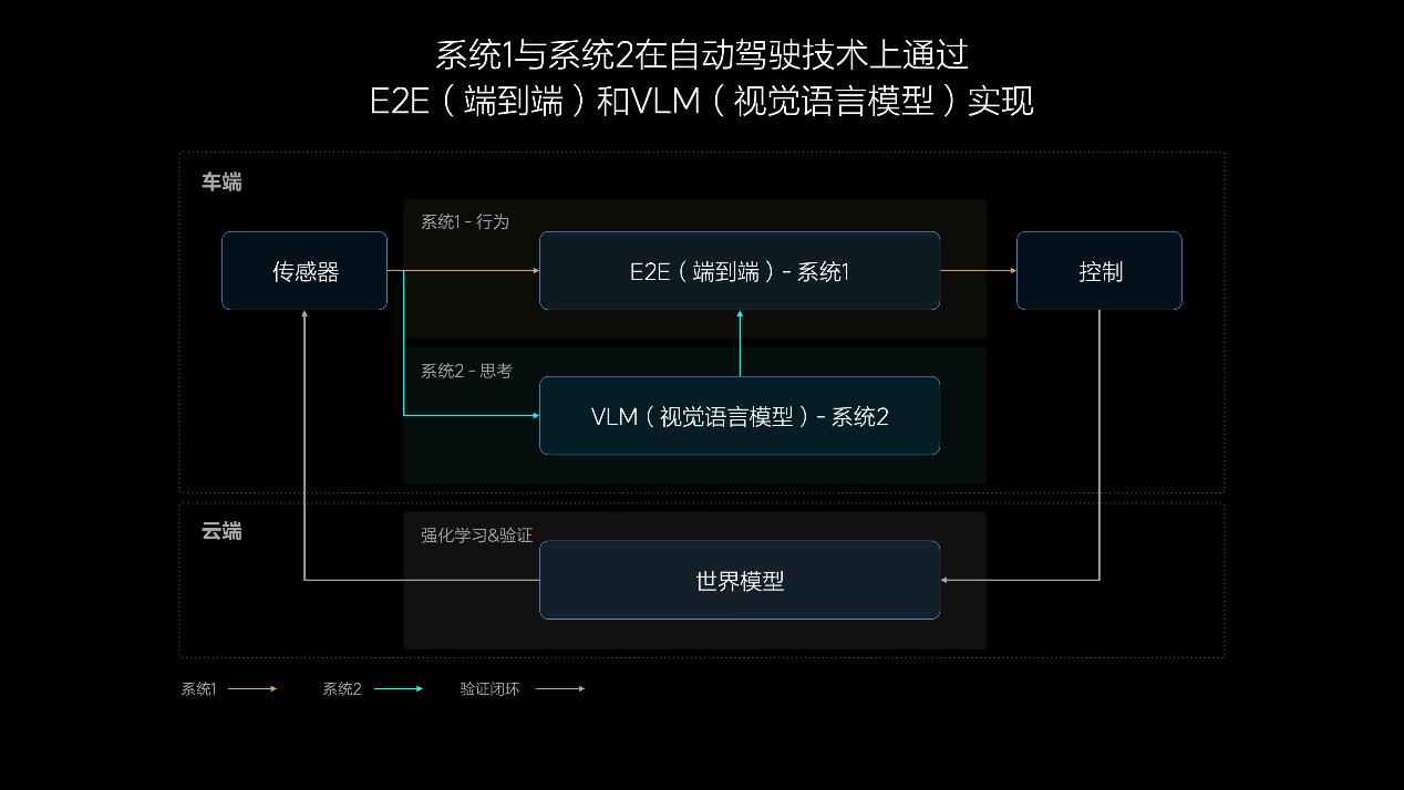 VLA的核心特性包括多模態(tài)感知與決策、全局上下文理解和系統(tǒng)透明性。它能夠基于視覺和語言信息進(jìn)行實(shí)時(shí)感知,并通過“思維鏈”技術(shù)構(gòu)建類人邏輯,推理復(fù)雜場(chǎng)景下的最優(yōu)駕駛決策。此外,VLA能夠理解長(zhǎng)達(dá)數(shù)十秒的全局路況信息,這對(duì)于施工工區(qū)、潮汐車道等復(fù)雜場(chǎng)景尤為重要。最重要的是,VLA的推理過程全程可求導(dǎo),能夠通過車載顯示向用戶解釋駕駛邏輯,增強(qiáng)用戶信任感。
