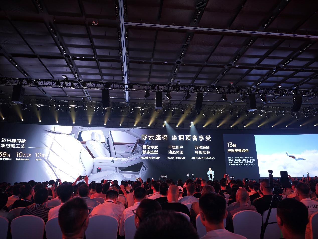 座艙內(nèi),舒云座椅采用13層舒適座椅結(jié)構(gòu),并采用邁巴赫同款雙絎縫工藝。此外,后排橫向空間與頭部空間均達(dá)到D級車標(biāo)準(zhǔn),膝部空間可達(dá)165mm,讓每一處都是貴賓般的禮遇。