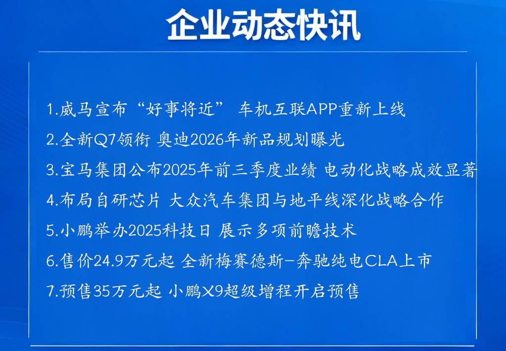 2025年11月第二周,汽車行業(yè)有不少值得關(guān)注的動態(tài),基本圍繞“技術(shù)突破”和“合作聯(lián)動”展開,下面就來看一下哪些信息值得關(guān)注。