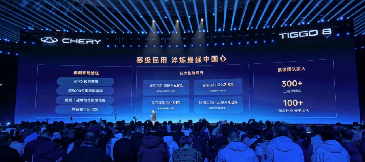 其中,全新第五代瑞虎8搭載的鯤鵬1.6T發(fā)動機全面迭代,通過i-HEC智效燃燒、智能熱管理、整機輕量化、六處摩擦優(yōu)化以及高效增壓等技術(shù)的升級,將增壓性能提升了6.5%、曲軸連桿強度提升2.8%、充氣模型優(yōu)化3.1%、噴油點火能力提升4.2%,使其最大輸出功率從此前的145kW提升至147kW,峰值扭矩從290Nm提升至310Nm。