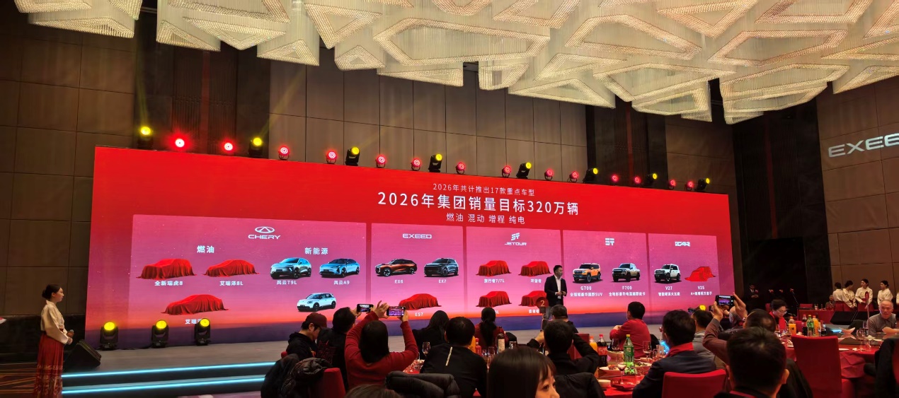 1月8日,以“一騎縱新途”為主題的2026奇家宴在北京舉行,發(fā)布2025年銷售業(yè)績與2026年發(fā)展規(guī)劃。奇瑞汽車宣布,將在2026年推出17款新車,涵蓋燃油、混動、增程、純電四大品類,沖擊年銷量320萬輛。