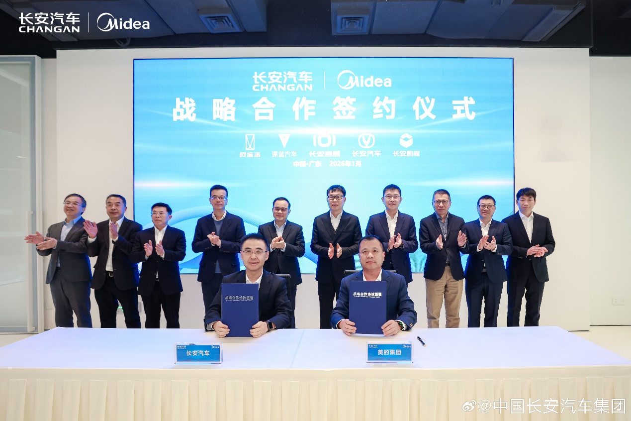 1月21日,長(zhǎng)安汽車與美的集團(tuán)達(dá)成全面戰(zhàn)略合作協(xié)議。雙方將在已有的多領(lǐng)域合作基礎(chǔ)上,進(jìn)一步在車家互聯(lián)、零部件與全渠道營(yíng)銷領(lǐng)域開展深度合作。