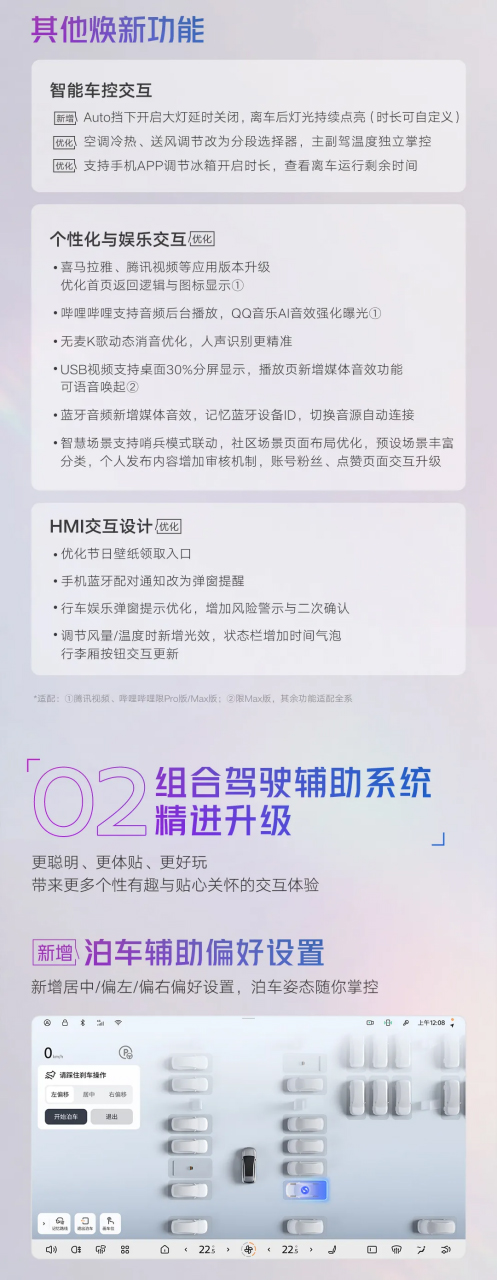 智能語音方面,升級(jí)了語音控制座椅、圈屏識(shí)圖、推薦充電樁,實(shí)現(xiàn)更自然便捷的交互體驗(yàn)。個(gè)性化娛樂方面,支持燈光、音效、影音自由定制,讓愛車成為表達(dá)個(gè)性的舞臺(tái)。