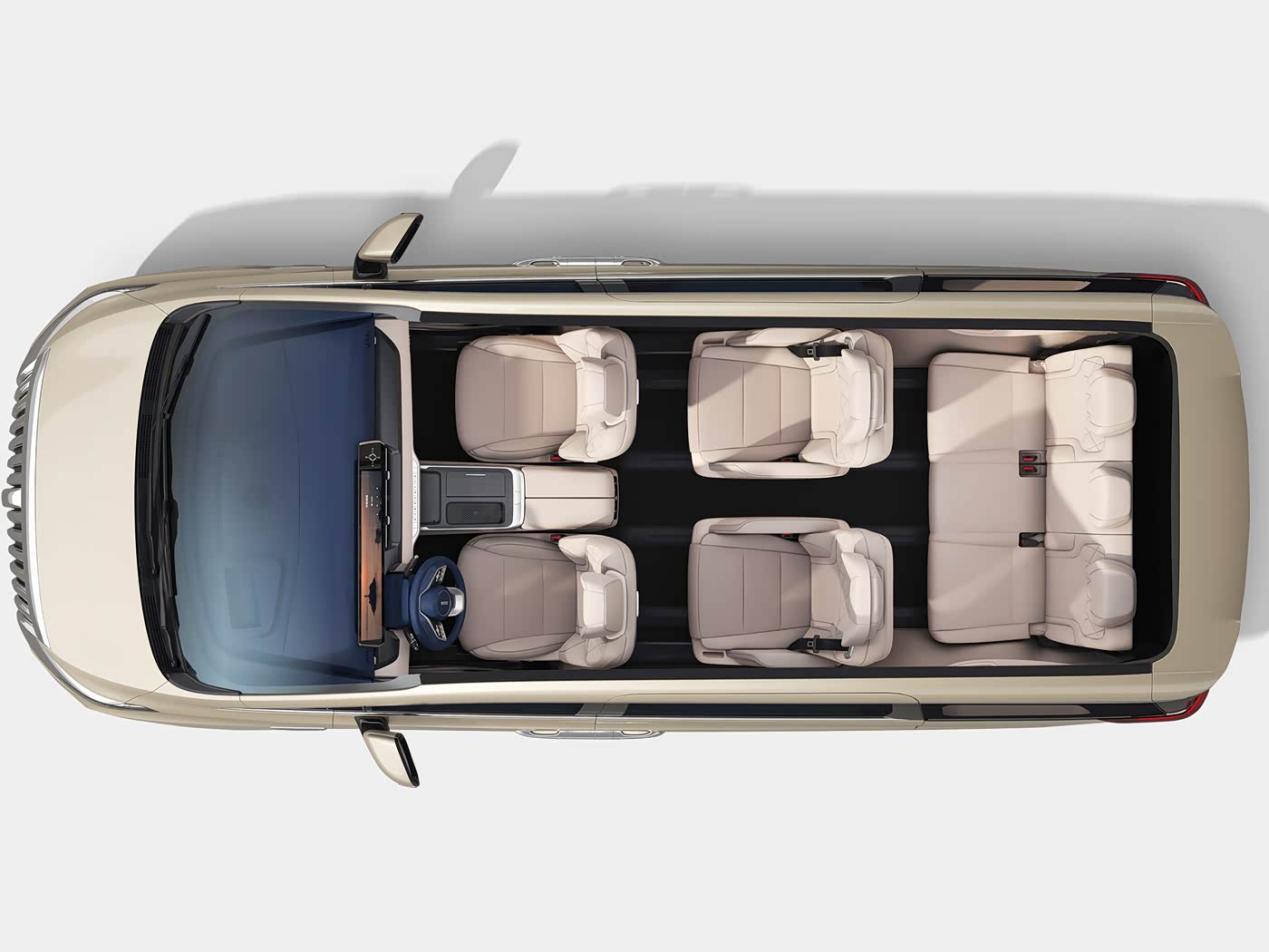 空間表現(xiàn)是該車的最大賣點(diǎn)。前排座椅可180°大角度放平,第二排為2個(gè)獨(dú)立座椅,第三排座椅靠背最大調(diào)節(jié)角度可達(dá)127°,支持4/6分比例放倒,乘坐舒適性出色。后備廂在第三排放倒并向前翻折后,最大容積可達(dá)1202L,后備廂地板下方還設(shè)有一個(gè)儲(chǔ)物格。
