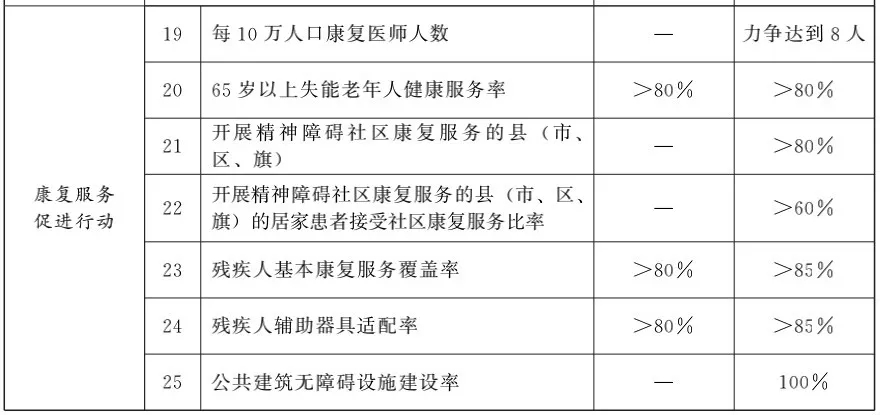 到2025年,覆蓋經(jīng)濟(jì)社會(huì)發(fā)展各領(lǐng)域的殘疾預(yù)防政策體系進(jìn)一步完善,全人群全生命周期殘疾預(yù)防服務(wù)網(wǎng)絡(luò)更加健全,全民殘疾預(yù)防素養(yǎng)明顯提升,遺傳和發(fā)育、疾病、傷害等主要致殘因素得到有效防控,殘疾康復(fù)服務(wù)狀況持續(xù)改善,殘疾預(yù)防主要指標(biāo)處于中高收入國(guó)家前列。