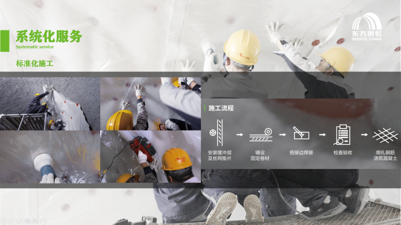 防水工程質(zhì)量“三分材料七分施工”。秉持東方雨虹標(biāo)準(zhǔn)化施工體系,雨虹玉玲瓏制定出HDPE預(yù)鋪反粘山嶺隧道防水系統(tǒng)標(biāo)準(zhǔn)化施工工法,從材料進(jìn)場、施工準(zhǔn)備、基層處理到細(xì)部節(jié)點處理、大面卷材鋪貼,到防水層自檢與驗收、防水層成品保護(hù),旨在對每個細(xì)節(jié)嚴(yán)格把控,而且便捷高效,為打造高質(zhì)量的隧道防水工程提供了有力保障。