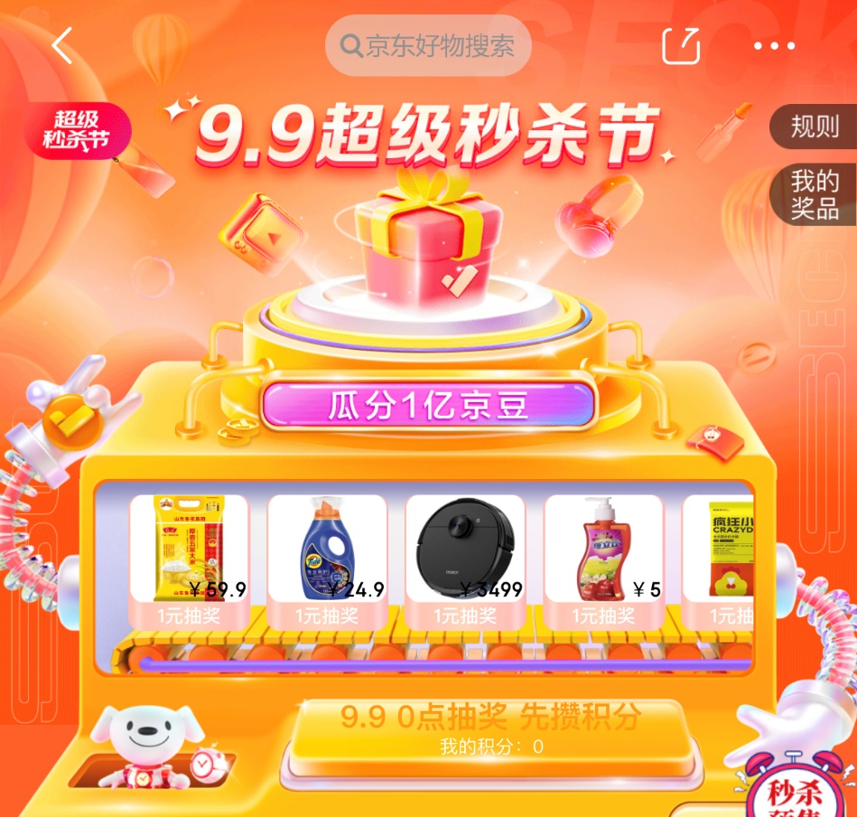 當(dāng)然,作為備受消費者喜愛的“秒殺”陣地,京東秒殺還將開啟1元秒殺抽獎活動。9月6日0點開始,大家只要在京東99超級秒殺節(jié)主會場參與簽到、做任務(wù)等互動玩法,就可以累積積分。9日0點開啟1元秒殺抽獎后,積分滿足的用戶就有機(jī)會抽取“1元秒殺好物”,包括美的(Midea)吸塵器Q3、惠氏啟賦藍(lán)鉆3段350g、雪花秀滋盈水乳30ml(水+乳)、歐萊雅(LOREAL)紫熨斗眼霜30ml、汰漬 Tide 專業(yè)深色炫彩洗衣液600g等大牌好物通通1元秒,還有京豆獎勵等你拿。