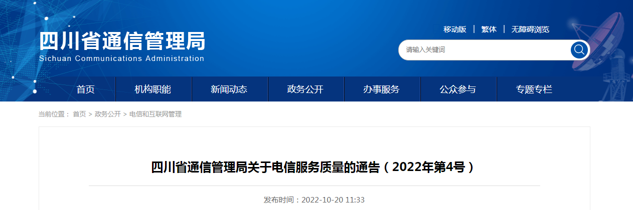 四川省通信管理局關(guān)于電信服務(wù)質(zhì)量的通告(2022年第4號(hào))
