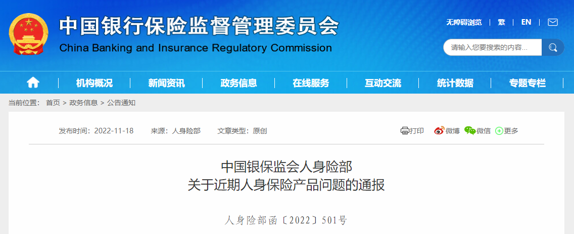 中國銀保監(jiān)會人身險部關(guān)于近期人身保險產(chǎn)品問題的通報