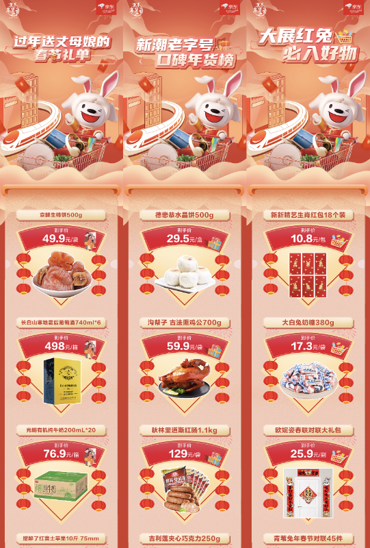 新年新氣象,兔年春節(jié)當(dāng)然要有一些兔元素作為家中點(diǎn)綴。“大展紅兔必入好物”合集,精選了新新精藝生肖紅包、大白兔奶糖、歐妮資春聯(lián)對(duì)聯(lián)大禮包、恒源祥吉慶秋衣褲套裝以及南極人本命年紅襪子等多種春節(jié)必備好物,現(xiàn)在加購(gòu)下單,新春“氣氛組”即刻就位。