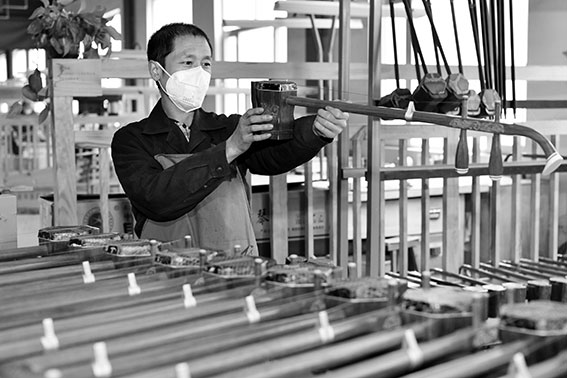圖為2月18日,河北省肅寧縣一家民族樂器生產(chǎn)企業(yè)的工人在生產(chǎn)車間內(nèi)檢查二胡質(zhì)量。牟 宇 攝
