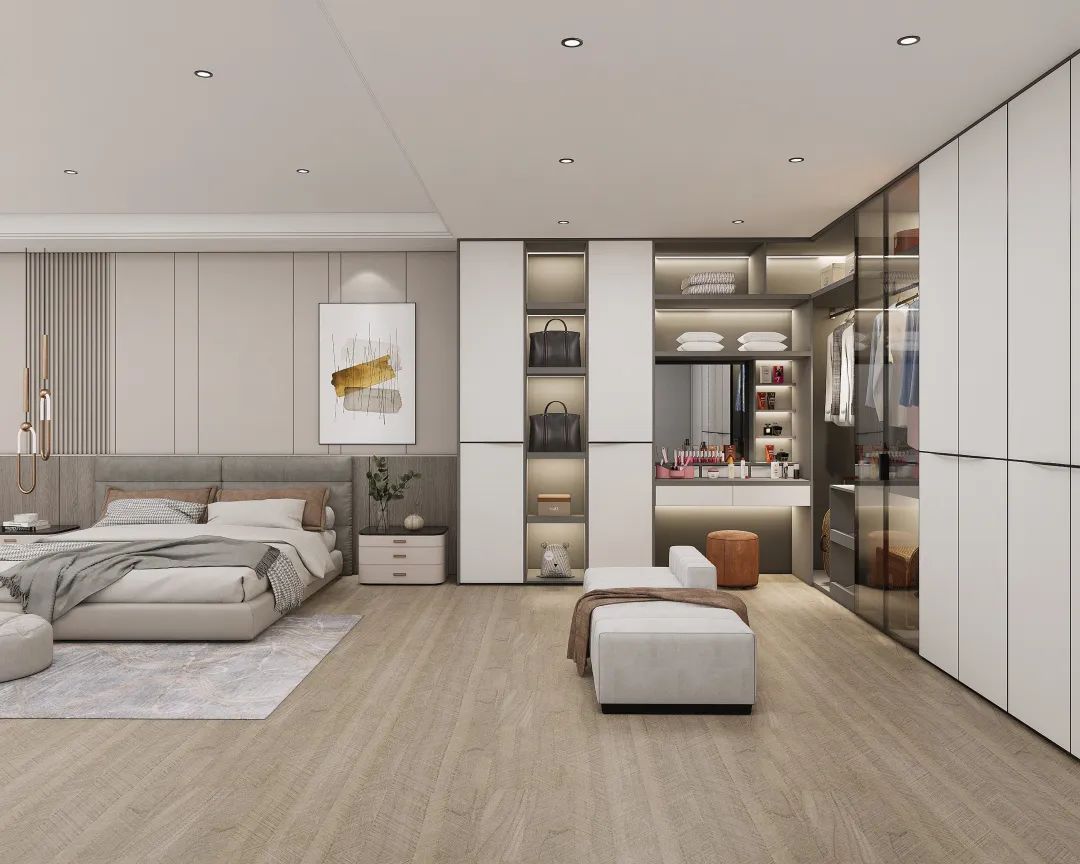 衣帽間設(shè)計(jì)功能空間齊備,不存在基礎(chǔ)的布局的缺失,體現(xiàn)空間的通透感。