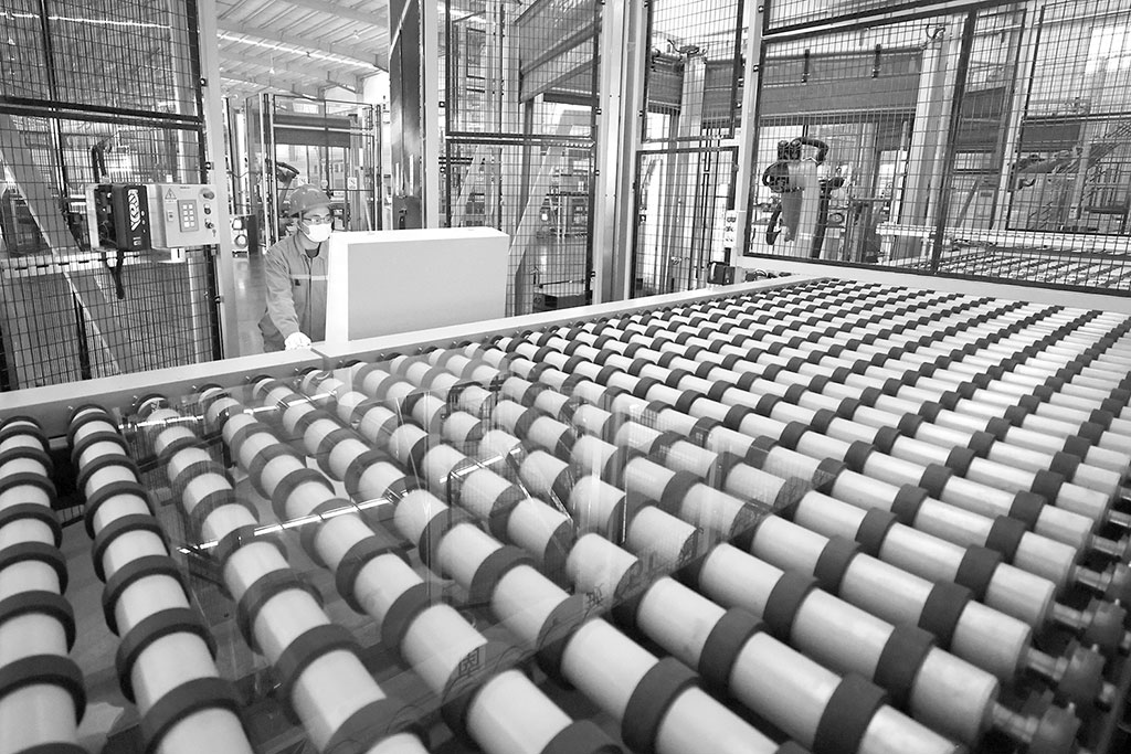 圖為近日,在永清縣一家超薄玻璃生產(chǎn)企業(yè),工人在查看玻璃堆垛數(shù)據(jù)。賈 珺 攝