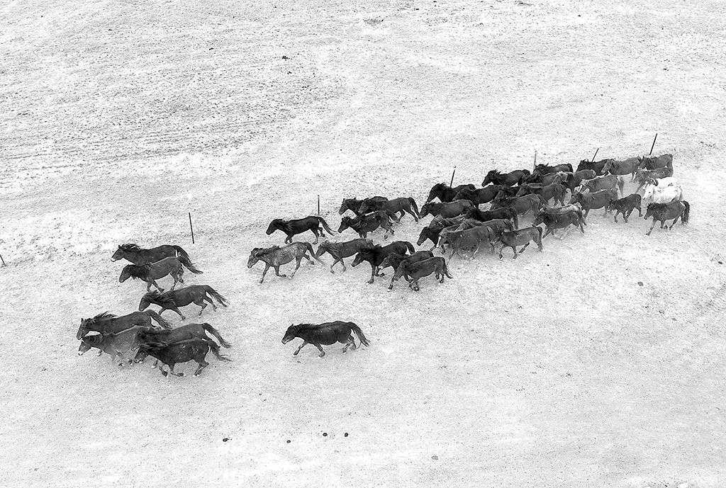 圖為5月3日,在阿克塞縣阿伊納鄉(xiāng)海子草原,馬群轉(zhuǎn)場去往夏季牧場。高宏善 攝