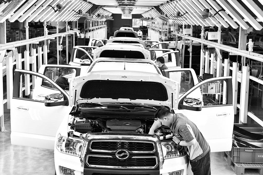 圖為在某汽車公司生產(chǎn)線,工作人員在裝配整車。郭緒雷攝