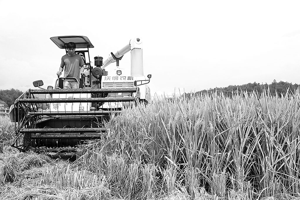 8月7日,湖南省作物學(xué)會(huì)邀請湖南省農(nóng)業(yè)農(nóng)村廳、湖南雜交水稻研究中心等單位的專家,對邵陽市隆回縣羊古坳鎮(zhèn)雷峰村超級雜交水稻高產(chǎn)攻關(guān)科研基地再生稻高產(chǎn)示范項(xiàng)目進(jìn)行頭季現(xiàn)場實(shí)割測產(chǎn)。圖為在雷峰村超級雜交水稻高產(chǎn)攻關(guān)科研基地,農(nóng)機(jī)手駕駛收割機(jī)收割再生稻。 曾 勇 攝