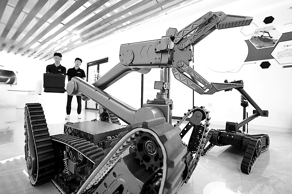 圖為一家機(jī)器人制造企業(yè)員工在調(diào)試機(jī)器人產(chǎn)品。牟 宇 攝